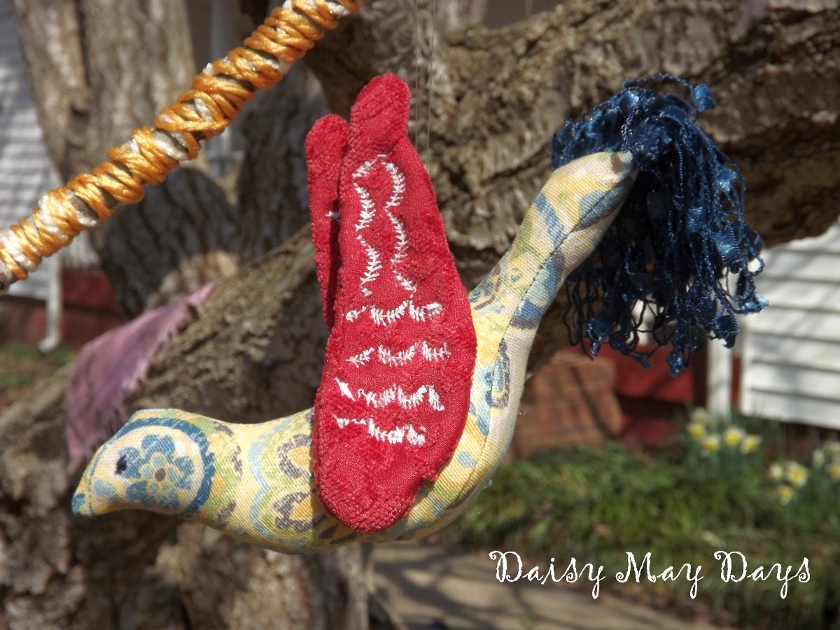 I started by making a little scrappy bird. That usually gets me warmed up for more sewing and today is no exception. And finally I have time to go through all the remnants, scraps and crafty findings from this past week. I managed to add quite a bit to my stash! I love to shop at thrift stores and secondhand shops for scraps and items suitable to upcycle.